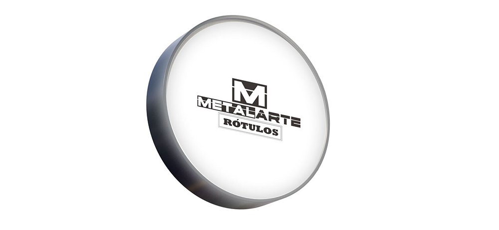 La caja de luz redonda de Rótulos Metalarte es un rótulo luminoso moderno y atractivo, diseñado para destacar tu marca tanto de día como de noche.