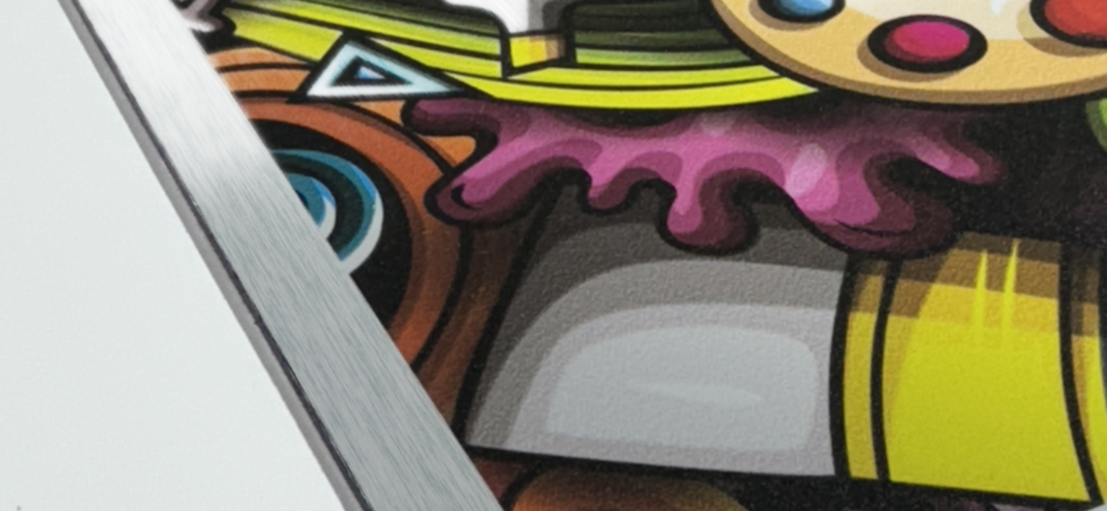 Su superficie cepillada genera un efecto plateado sofisticado que aporta profundidad y brillo a cualquier diseño, mientras que la impresión directa UV garantiza colores definidos y una excelente durabilidad.